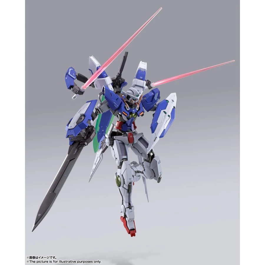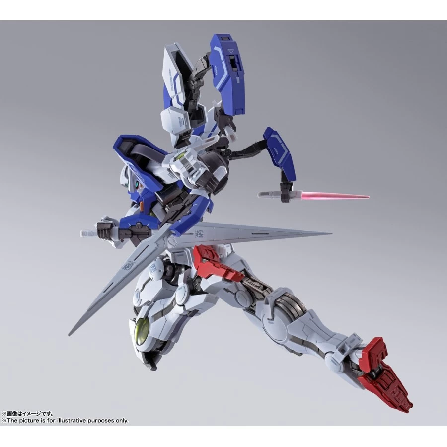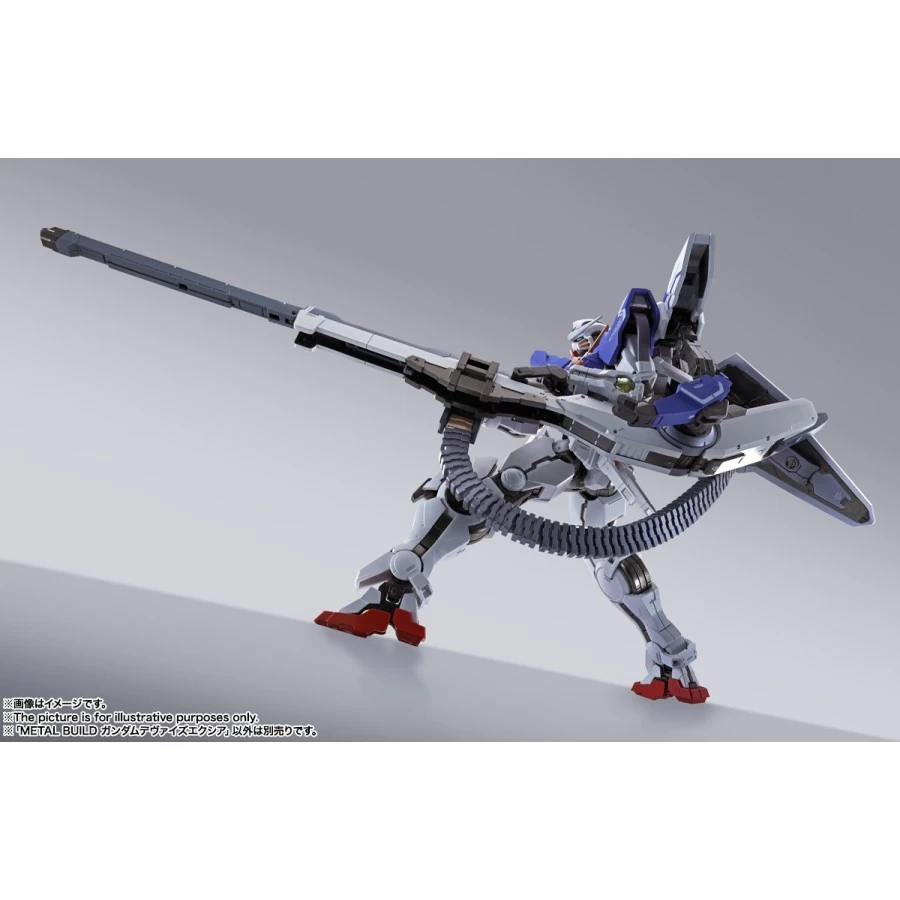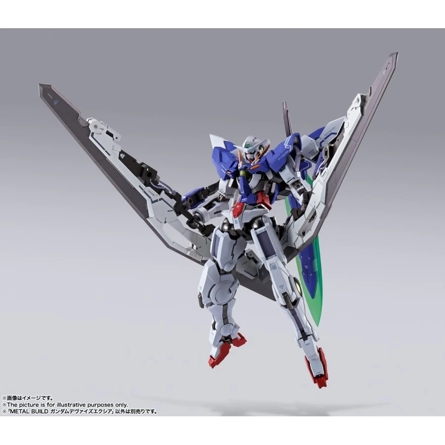Gundam Devise Exia tratto da Mobile Suit Gundam 00 Revealed Chronicle entra nella line-up Bandai Metal Build, azione completa alto 18cm realizzato in ABS, PVC e metallo die-cast. Viene fornito con armi e parti del corpo intercambiabili.