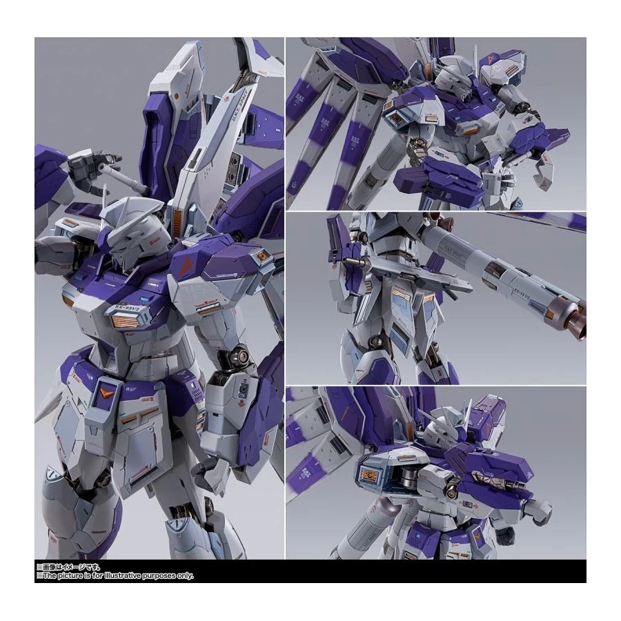 L’RX-93-v2 Hi-v Gundam entra nella line-up Bandai Metal Build, azione completa alto 20.5cm é realizzato in ABS, PVC e metallo die-cast. Viene fornito con jetpack, scudo, serbatoio propellente, Beam Rifle, 8 mani intercambiabili, 3 Beam Saber e 6 Fin Funnels.