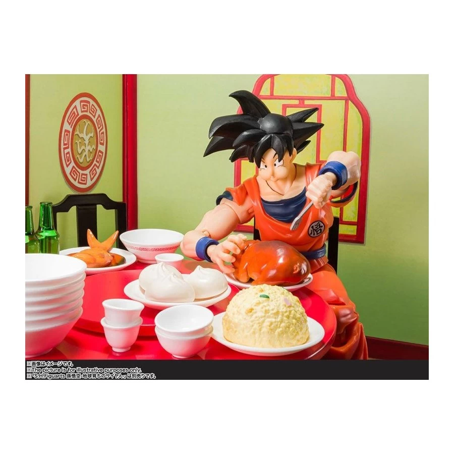 Son Goku’s Eating Moderately Set tratto da Dragon Ball Z entra nela line-up Bandai S.H. Figuarts. Viene fornito con sfondo, mobili, stoviglie, cibo e volti alternativi per la Bandai S.H. Figuarts Son Goku Saiyan Grown on Earth.