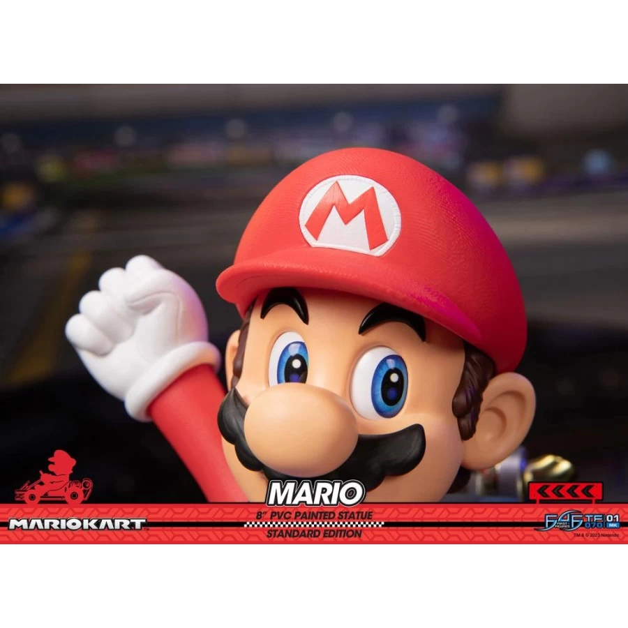 Mario (Standard Edition) tratto da Mario Kart entra nella line-up First 4 Figures, realizzato in PVC e misura 30cm x 30cm x 22cm