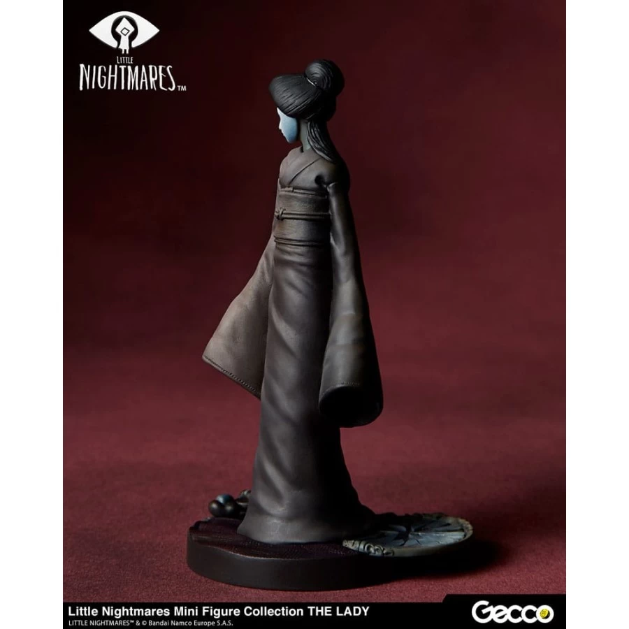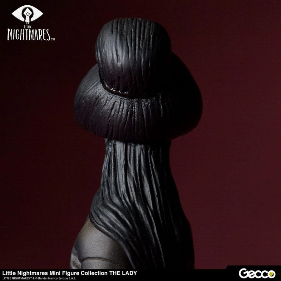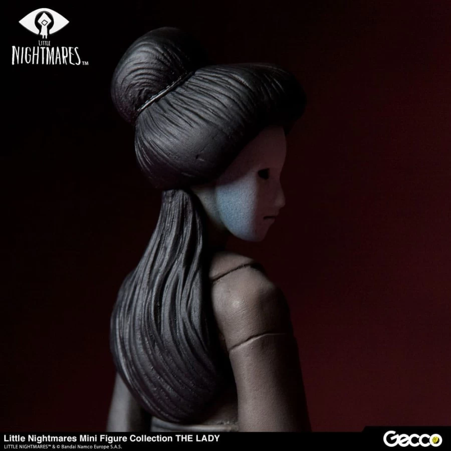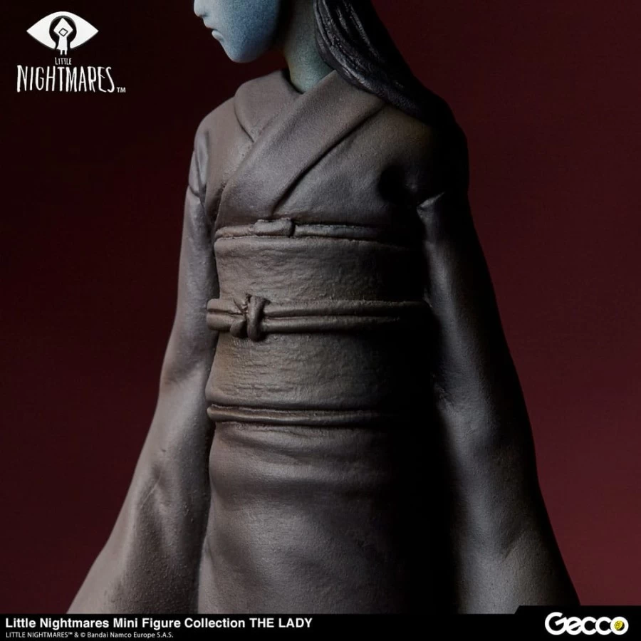 La Signora, l’amante che controlla tutto nell’enorme nave Maw, il palcoscenico principale di Little Nightmares, è ora disponibile in una serie di figure delle dimensioni di un palmo. La scultura cattura l’atmosfera inquietante creata dalla sua figura insolitamente alta e dagli occhi attenti che sbirciano dalla sua maschera bianca. Mentre l’aspetto della figura è terrificante, i capelli ben sistemati e l’elegante kimono della Dama sono ricreati fedelmente per mostrare i suoi modi aggraziati. La base è sapientemente ricreata nell’immagine della stanza della Signora, accentuata da uno specchio rotto e da una statua in bronzo.
