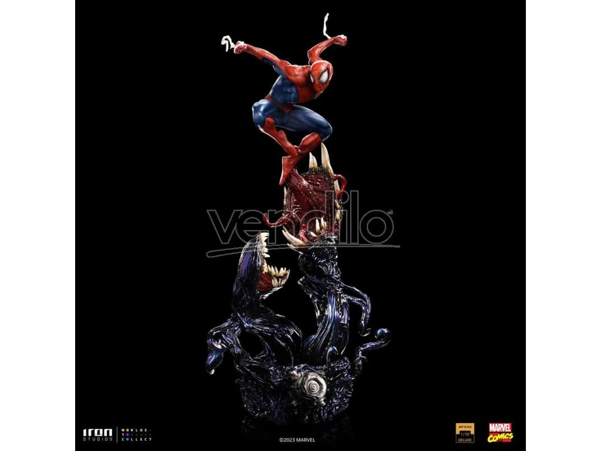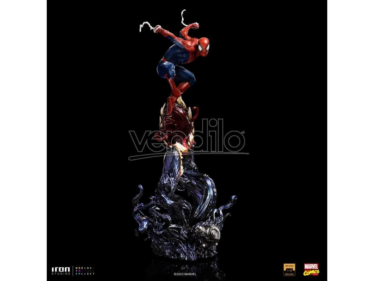 Iron Studios porta anche una versione normale della statua “Spider-Man – Spider-Man vs Villains – BDS Art Scale 1/10”, con una base più semplice in cui una mostruosa e viscosa lingua aliena rompe la struttura di una base metallica pavimento sotto i suoi piedi per cercare di catturarlo.