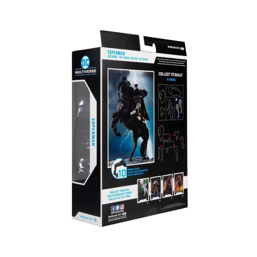 Superman tratto da The Dark Knight Returns entra nella line-up Mc Farlane Toys DC Multiverse “Built A Action Figure”, azione completa alto 18cm. Viene fornito con base espositiva, 2 mani intercambiabili, card illustrata e parti del cavallo di Batman.