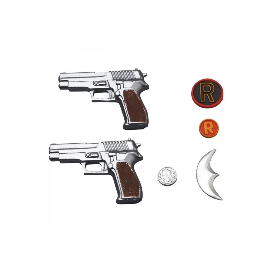 Viene fornito con base espositiva, mani intercambiabili, teste intercambiabili e armi