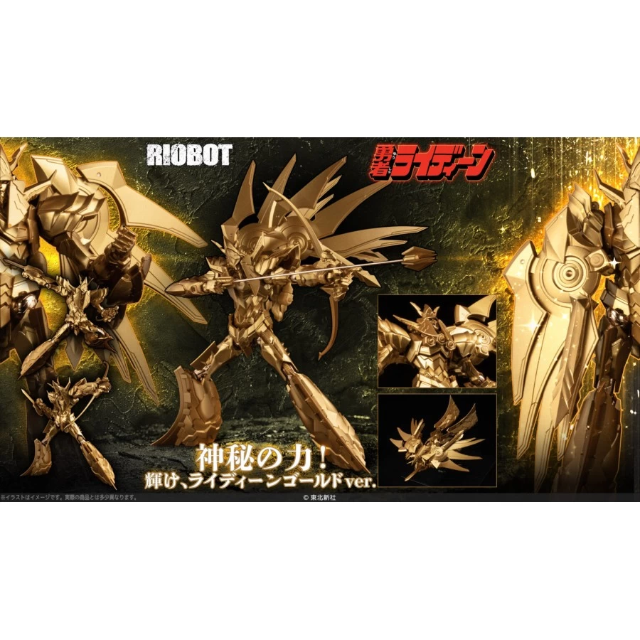 Il Prode Raideen Gold Version entra nella line-up Sentinel Riobot, trasformabile, azione completa e alto 18cm é realizzato in ABS, PVC e metallo die-cast. Viene fornito con base espositiva, 6 mani intercambiabili, God Gorgon, God Arrow, God Breaker, God Voice, trivella, ali e volto intercambiabile.