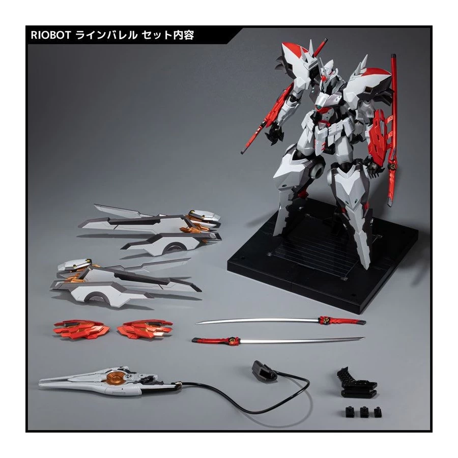 Linebarrels tratto da Linebarrels of Iron entra nella line-up Sentinel Riobot, azione completa alto 26cm realizzato in ABS, PVC e metallo die-cast. Viene fornito con base espositiva, adesivi e decals, 2 spade lunghe, parti stabilizatori coda ed Executer.