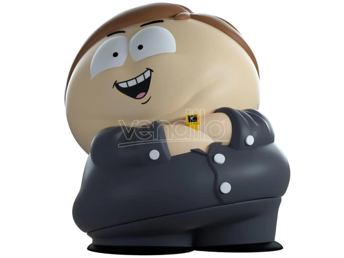 Ciao ragazzi, sono Eric di South Park Realty Group! Cartman torna con un nuovo look, pronto a venderti la prossima migliore casa nella zona di South Park. Sei pronto a trasferirti fuori città? Eric Cartman è il tuo uomo! In piedi a 3.1, quest’uomo è una casa di potere con la quantità di reddito che ha generato per se stesso – basta guardare l’orologio d’oro che sta flettendo sul braccio sinistro! I suoi capelli sono acconciati in un aspetto elegante all’indietro e divisi verso il lato destro del viso. È vestito di nero, con una camicia nera abbottonata e pantaloni abbinati. Con una posizione piegata all’indietro, si vede Cartman ridere mentre le sue braccia sono incrociate davanti al petto e il suo doppio mento è ben visibile. L’esterno della sua confezione a doppia parete mostra i prati davanti ad alcune case. L’interno è il logo di South Park che si ripete su un motivo in scala di grigi. La custodia protettiva mostra Cartman, Stan, Kenny e Kyle che sbirciano dagli angoli sopra uno sfondo nero. Questo oggetto da collezione viene spedito in una custodia esterna opaca, goffrata e protettiva e una protezione in plastica di dimensioni personalizzate per la massima protezione durante la spedizione. spedizione.