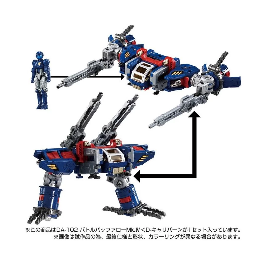 Battle Buffalo Mk.IV torna nella line-up Takara Tomy Diaclone, con questa variante D-Calibur. Viene fornito con 7 armi e 3 Dianauti