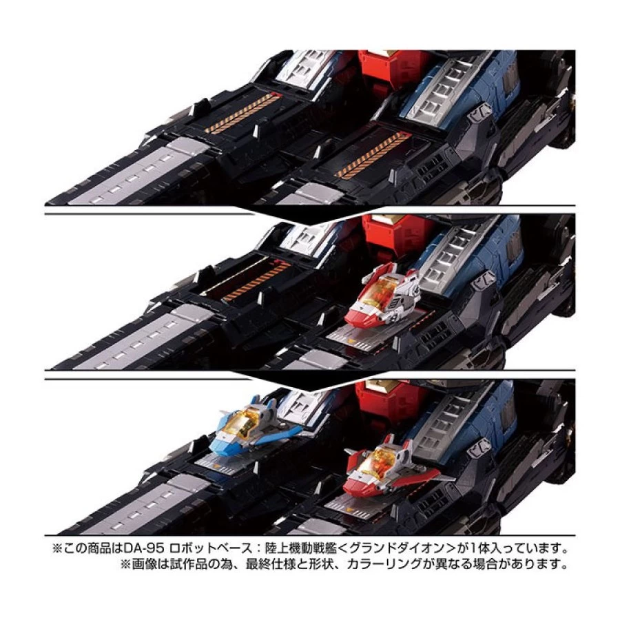 Il Grand Daion Robot Base entra nella line-up Takara Tomy Diaclone, lungo 52cm in modalità Land Mobile Battleship e alto 45cm in modalità Heavy Machine Mode. Viene fornito con: