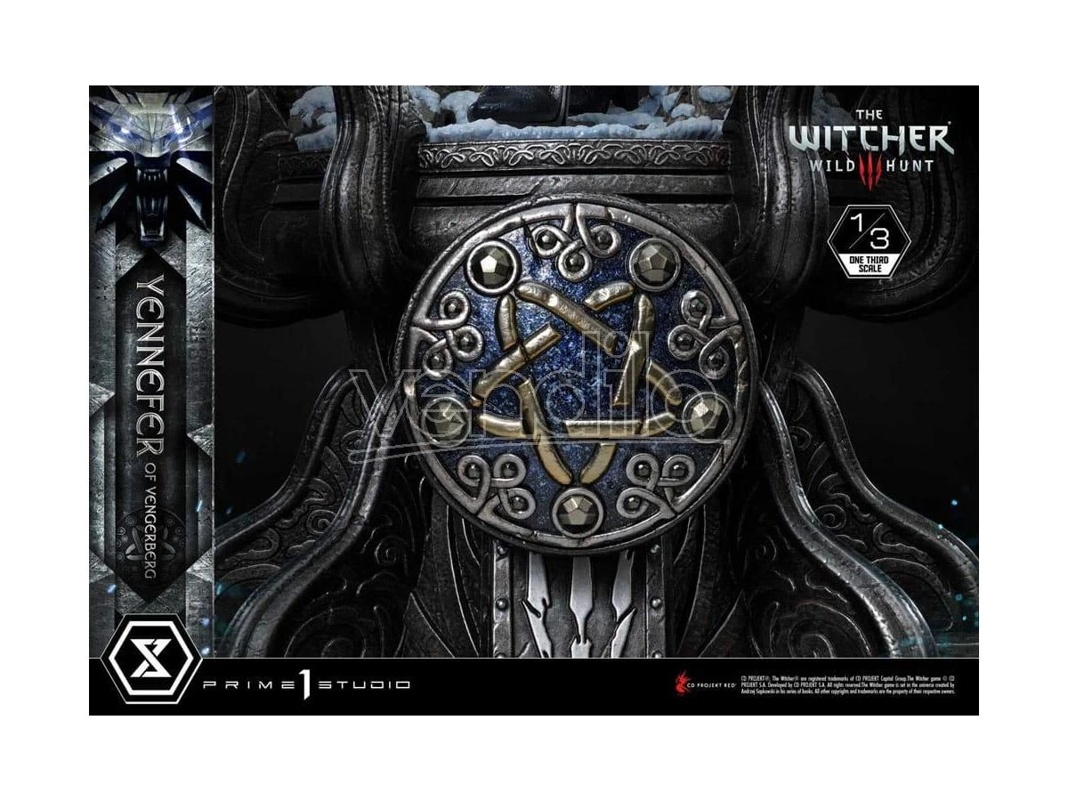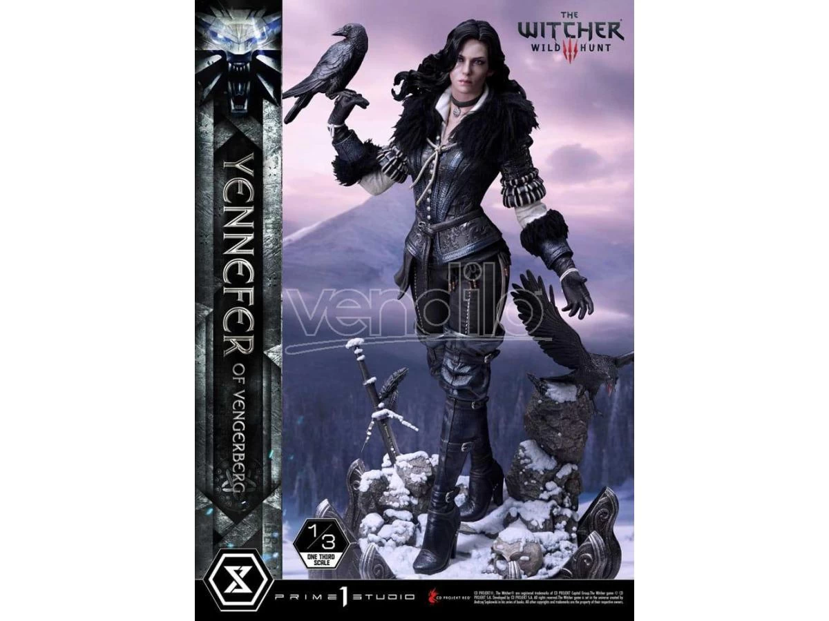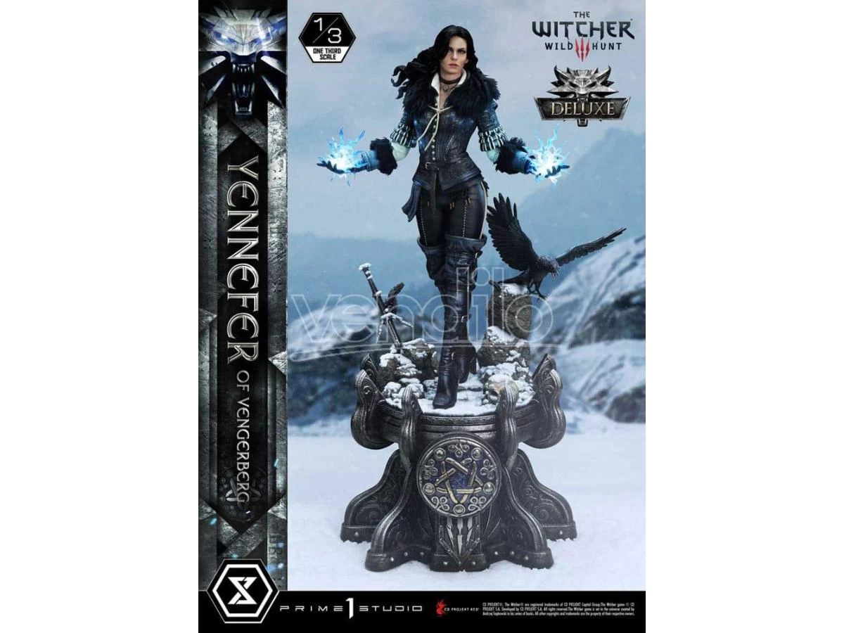 In piedi a 33 pollici di altezza, l’amazzone della guerra posa con grazia, accompagnata da due corvi. Un corvo è appoggiato sulla sua mano destra mentre la sua mano sinistra è tesa verso l’esterno, pronta a lanciare un incantesimo in qualsiasi momento. Con la pelle chiara come la neve, lungo , voluminosi capelli corvini e occhi color viola a causa del sangue elfico che scorre nelle sue vene, emana una presenza imponente a cui è difficile resistere. Gli artigiani di Prime 1 Studio hanno fatto di tutto per dare vita alla maga con la massima attenzione ai dettagli. Indossa il suo abbigliamento distintivo ed elegante, che riflette correttamente il suo status di potente mago che qualsiasi cittadino del continente può riconoscere. Il gilet di pelle accentua la sua figura e presenta cuciture e motivi molto intricati. La pelliccia nera attorno al collo e alle braccia la tiene al caldo durante i suoi viaggi. Gli stivali al ginocchio completano il suo look e forniscono sia stile che mobilità per il combattimento. Si trova in cima a una base rivestita da un sottile strato di neve, a indicare che attualmente sta vagando per le regioni più fredde di Skellige. Con la spada di Geralt piantata in una roccia ai suoi piedi, sicuramente non è troppo lontana da Kaer Morhen, dimora ancestrale dei Witcher.