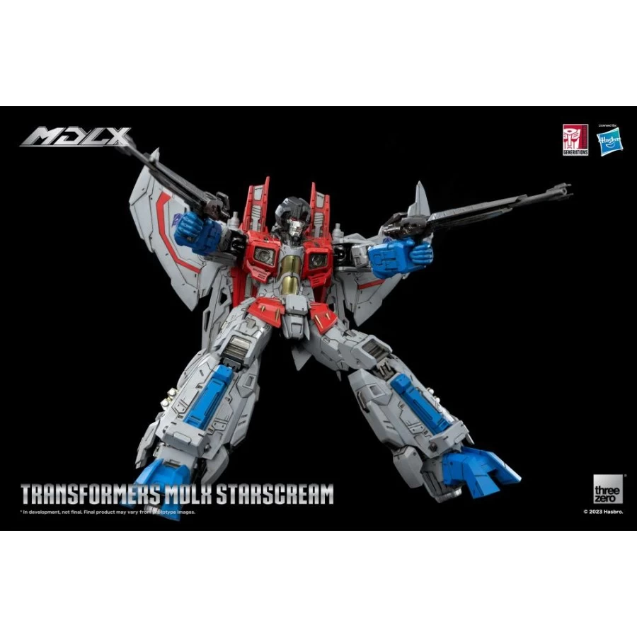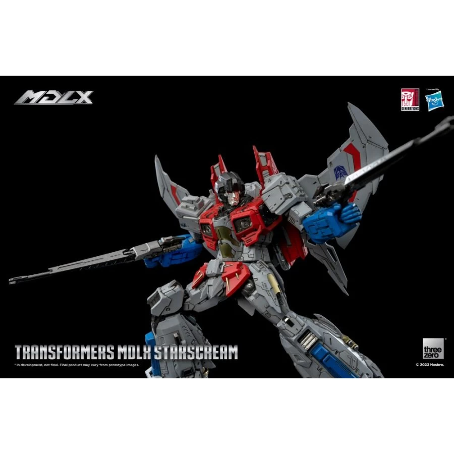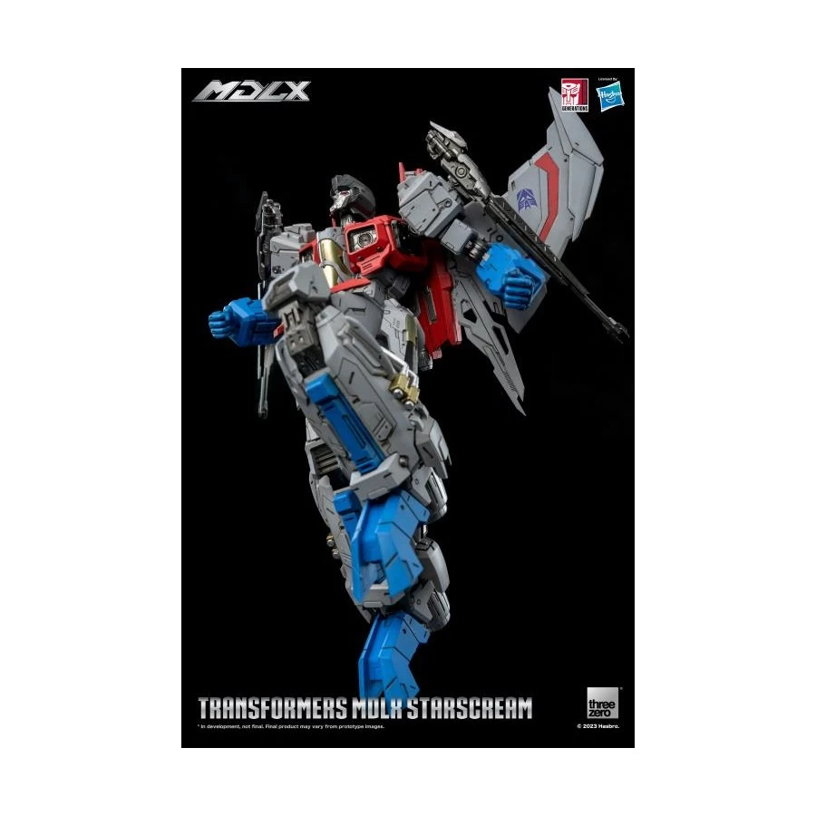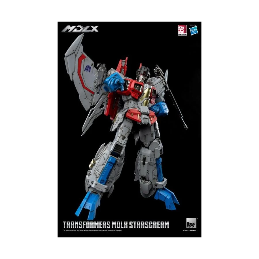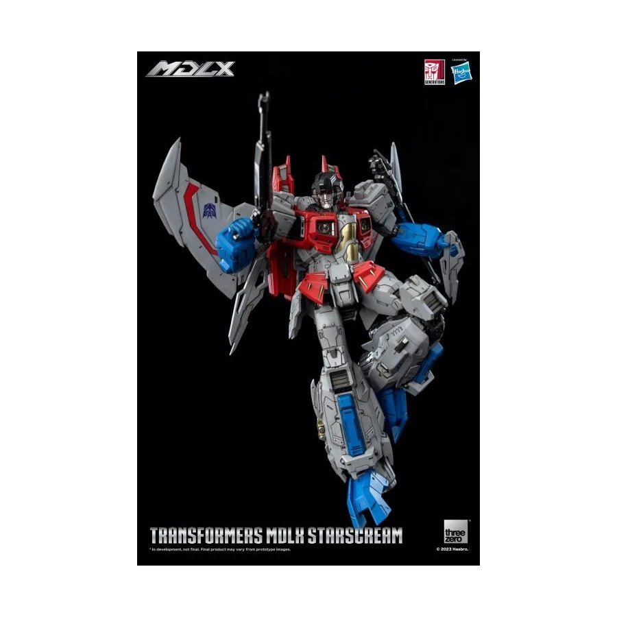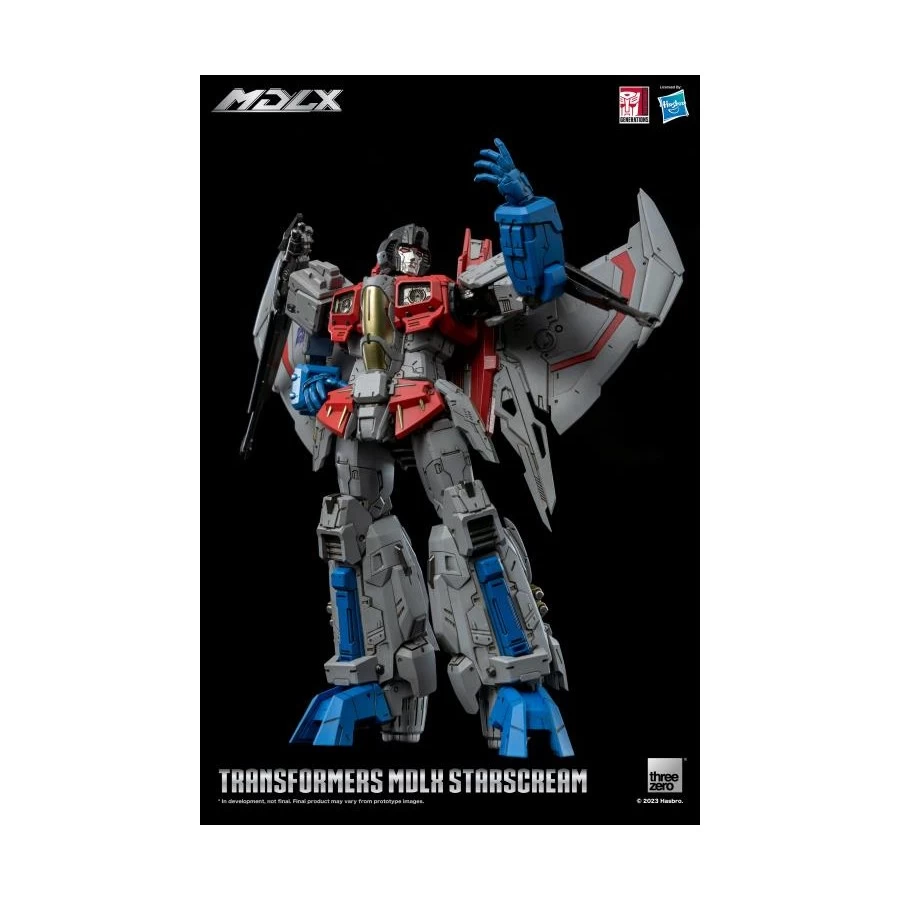 Starscream tratto da Transformers entra nella line-up Threezero Transformers MDLX Articulated Figures Series, azione completa alto 20cm non trasformabile. Realizzato in ABS, PVC, POM e metallo die-cast. Viene fornito con 8 mani intercambiabili, 2 volti intercambiabili, e armi
