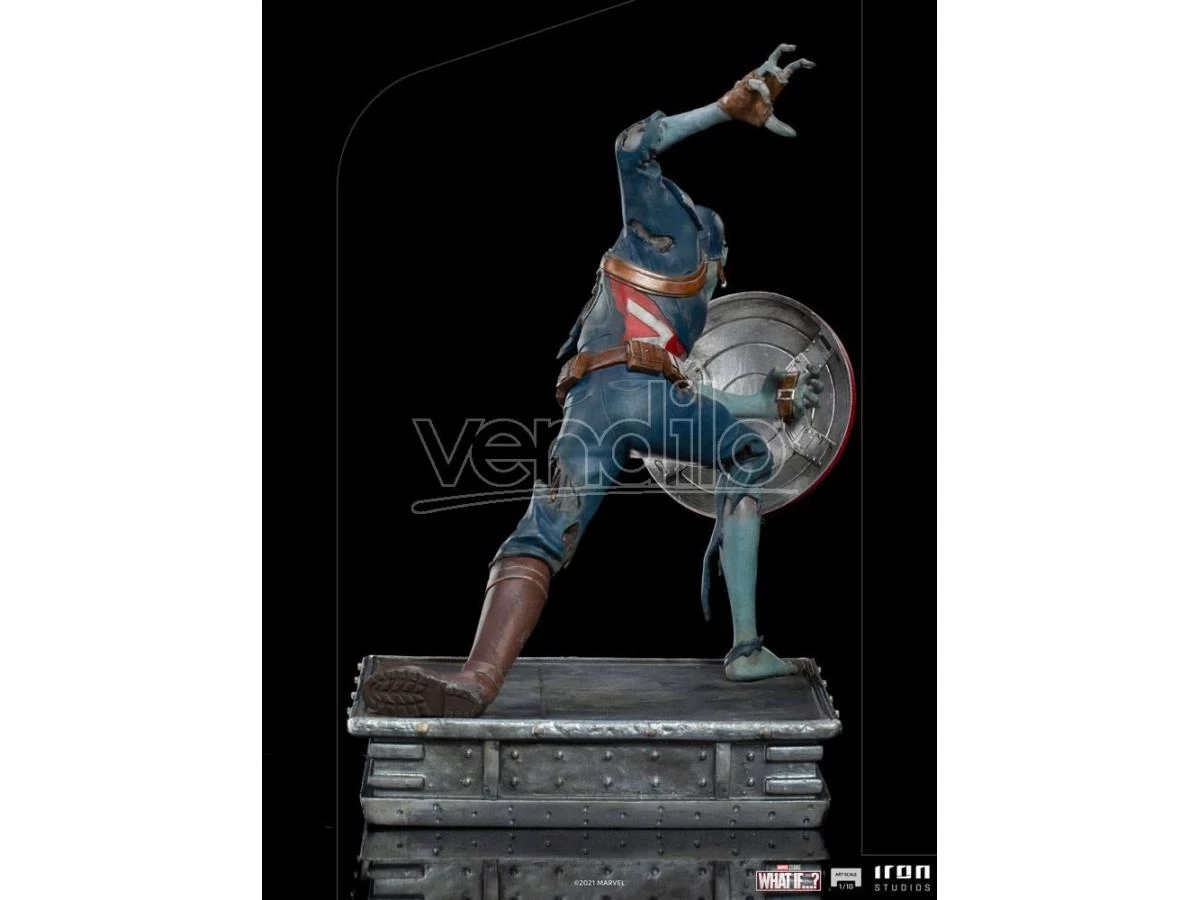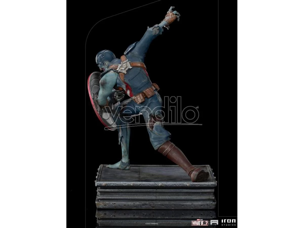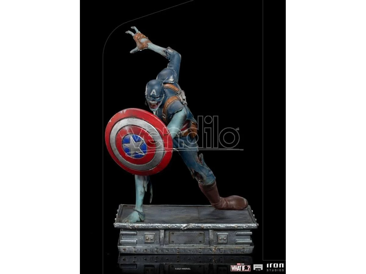 Trascinando la gamba sinistra a causa della caviglia fratturata, la creatura decrepita, un tempo il primo vendicatore, avanza sul pavimento di metallo di un vagone ferroviario, affamato e in cerca della sua prossima preda. Sebbene ruggisca come un predatore primordiale, quel poco di istinto di combattimento che è rimasto nella sua memoria di quando era ancora vivo, in più il siero del super-soldato che rimane nel suo corpo lo rende ancora più pericoloso e letale. Anche come zombi, la creatura sa ancora come usare il suo scudo leggendario. In questo modo Iron Studios presenta la sua statua “Zombie Captain America – What If…? – Art Scale 1/10”, derivata dalla serie animata Marvel Studios dallo streaming Disney+.